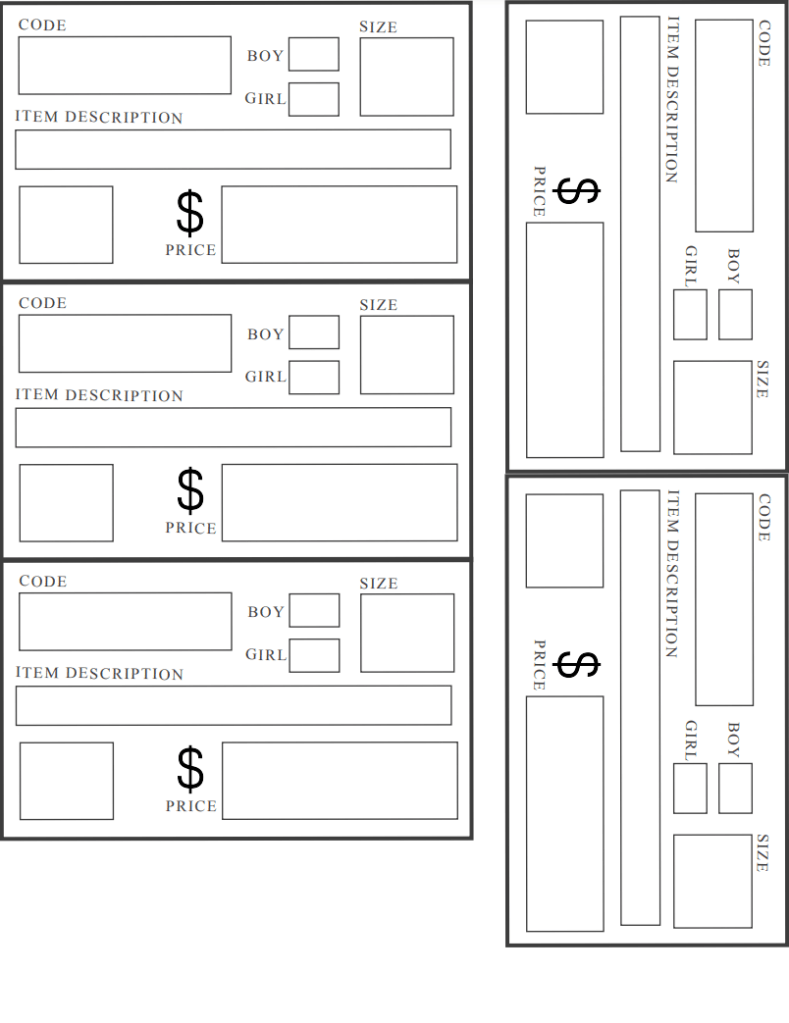 - Price items in whole dollars. Group items to equal a value of at least $2.00.Write the price in red if you want your items to go half-price on Sunday.